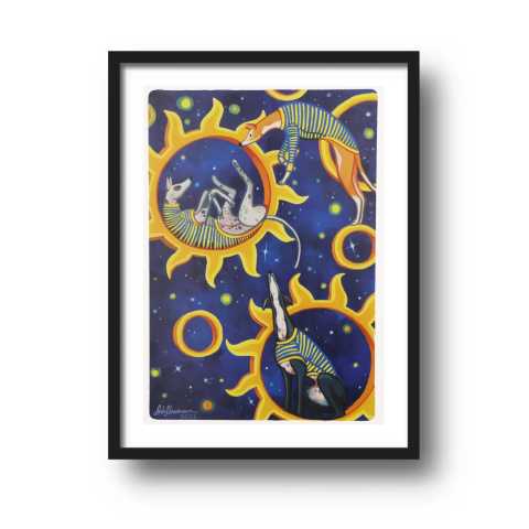 Ash loves greyhounds, birds, fantasy stories, go-karting and hiking. She paints her days away in her home studio in Melbourne, Victoria with her dog Remus by her side.